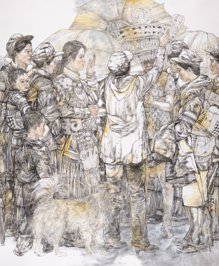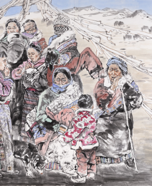 In recent years, the creation takes the western minorities as the material, and has been on-the-spot investigation and sketching for many times. The creation of his ink characters not only has the academic height of academic solid foundation, but also pays attention to reflect people's livelihood, it reflects some common scenery in real life, which is refreshing and can be appreciated by both refined and popular tastes. With pen and ink, the technique of landscape flower-and-bird painting can be freely used in his figure painting creation, which is quite popular among collectors.