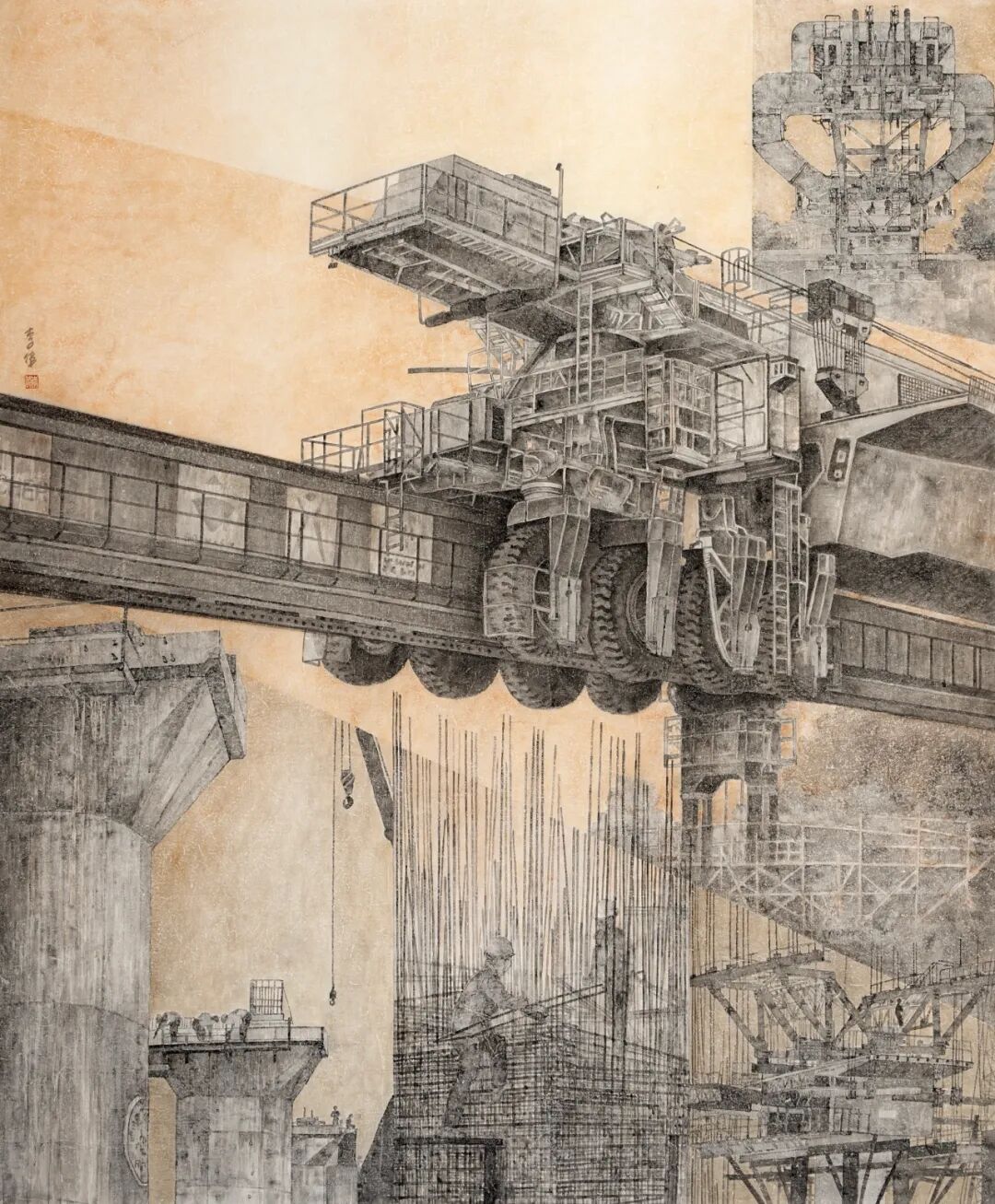 李伟的作品融合了传统工笔画技法与现代审美观念,展现出新时代的朝气与活力。山水与城市、自然与工业、传统与现代在李伟的笔下和谐共存,他叙述的时代故事,是艺术与现实的完美融合,描绘出对生活的细腻观察和对社会进步的深刻见解。超链接