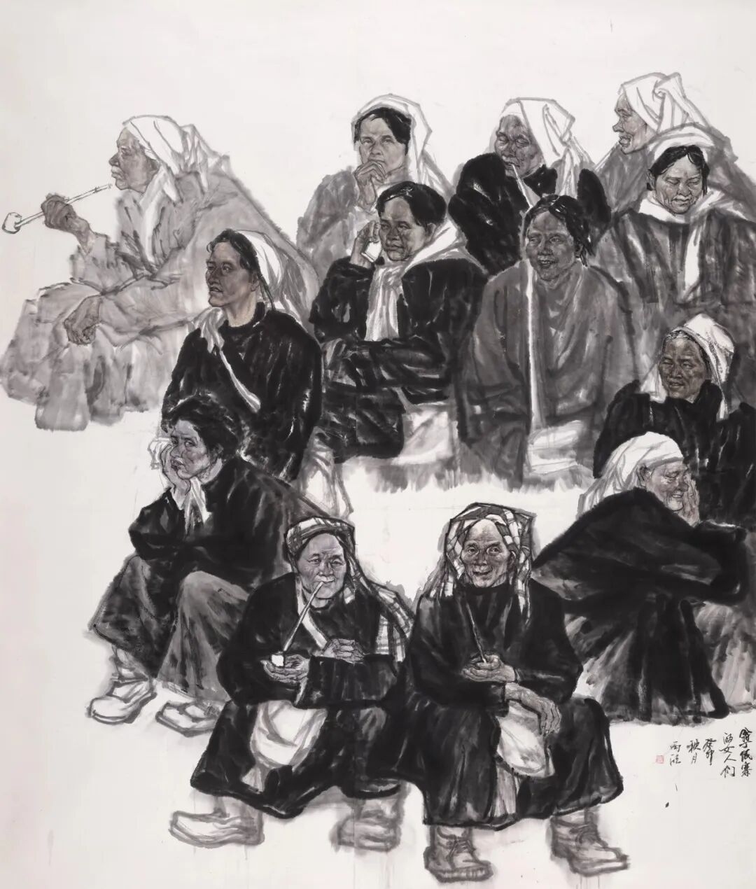 中国美协会员 魏丙欣作品《翁丁佤寨的女人们》