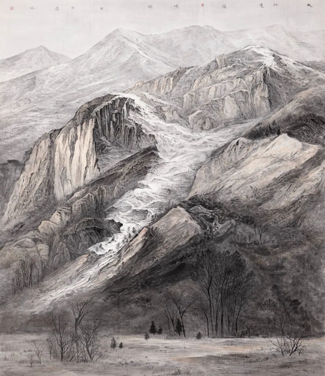 2012年,作品《瑞雪漫落太行山》入选“八荒通神”——哈尔滨美术双年展;